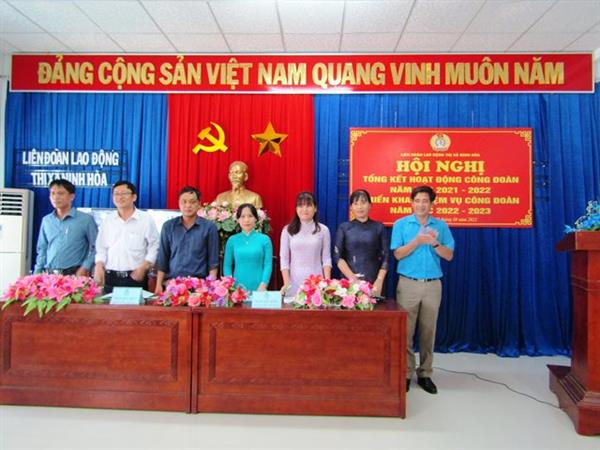 Sáng 18/10/2022, Liên đoàn Lao động thị xã Ninh Hòa tổ chức Tổng kết hoạt động công đoàn năm học 2021-2022 và phương hướng, nhiệm vụ năm học 2022-2023. Tham dự và chỉ đạo Hội nghị có đồng chí Bùi Thanh Bình - Chủ tịch LĐLĐ tỉnh Khánh Hòa; đồng chí Nguyễn Hữu Nam - Chủ tịch LĐLĐ thị xã Ninh Hòa.