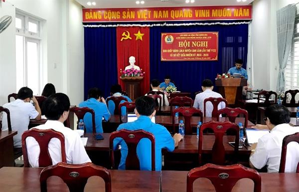 Tại hội nghị, BCH tập trung đánh giá kết quả thực hiện các mục tiêu, nhiệm vụ chủ yếu của Nghị quyết Đại hội Công đoàn huyện Cam Lâm lần thứ 8, nhiệm kỳ 2018 – 2023. Nửa đầu nhiệm kỳ, bám sát chỉ đạo của Liên đoàn Lao động tỉnh Khánh Hòa và Huyện ủy Cam Lâm các cấp công đoàn đã có nhiều đổi mới, sáng tạo nâng cao chất lượng hoạt động công đoàn, thực hiện tốt nhiệm vụ chăm lo, bảo vệ quyền và lợi ích hợp pháp, chính đáng của công nhân viên chức lao động đặc biệt là đối với các doanh nghiệp khu vực ngoài nhà nước. Hàng năm, đạt 100% đơn vị khối hành chính sự nghiệp tổ chức hội nghị cán bộ, công chức, viên chức, 60% doanh nghiệp có tổ chức công đoàn tổ chức hội nghị người lao động đúng quy định. 47 doanh nghiệp đã tiến hành xây dựng, ký kết và thực hiện thỏa ước lao động tập thể. Phát triển đoàn viên, xây dựng tổ chức công đoàn vững mạnh, nâng cao chất lượng và hiệu quả hoạt động của đội ngũ cán bộ công đoàn, đã lập mới được 8 Công đoàn cơ sở khu vực ngoài nhà nước và kết nạp mới hơn 1000 đoàn viên. Có gần 1.400 lượt cán bộ công đoàn tham gia các lớp tập huấn, bồi dưỡng, có 336 đoàn viên được giới thiệu cho Đảng xem xét kết nạp và có 333 đoàn viên công đoàn ưu tú được đứng vào hàng ngũ của Đảng, đạt 66 % chỉ tiêu Nghị quyết Đại hội III công đoàn đề ra.