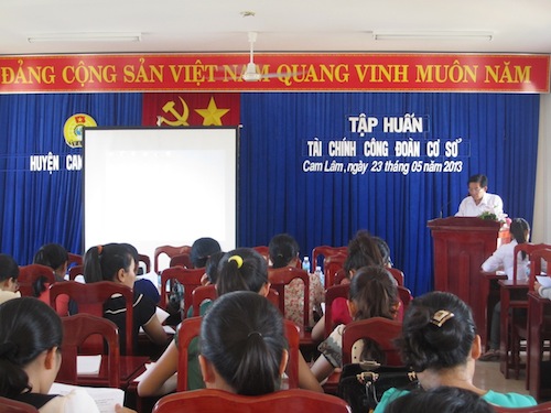 Để giúp Công đoàn cơ sở triển khai công tác tài chính CĐ theo Luật Công đoàn năm 2012, ngày 23-5, LĐLĐ huyện Cam Lâm tổ chức lớp tập huấn tài chính CĐCS cho gần 80 đồng chí là kế toán các CĐCS trong toàn huyện.