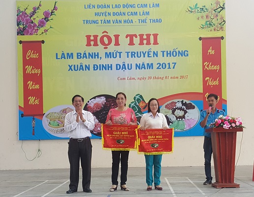 Hưởng ứng Chương trình “Tết sum vầy 2017”, ngày 20/1, tại trung tâm Văn hóa thể thao huyện, Liên đoàn lao động huyện phối hợp với trung tâm văn hóa thể thao huyện và Huyện đoàn Cam Lâm tổ chức Hội thi bánh, mứt, bánh chưng gồm 31 đội và gần 500 CNVCLĐ tham gia thi và cổ vũ.