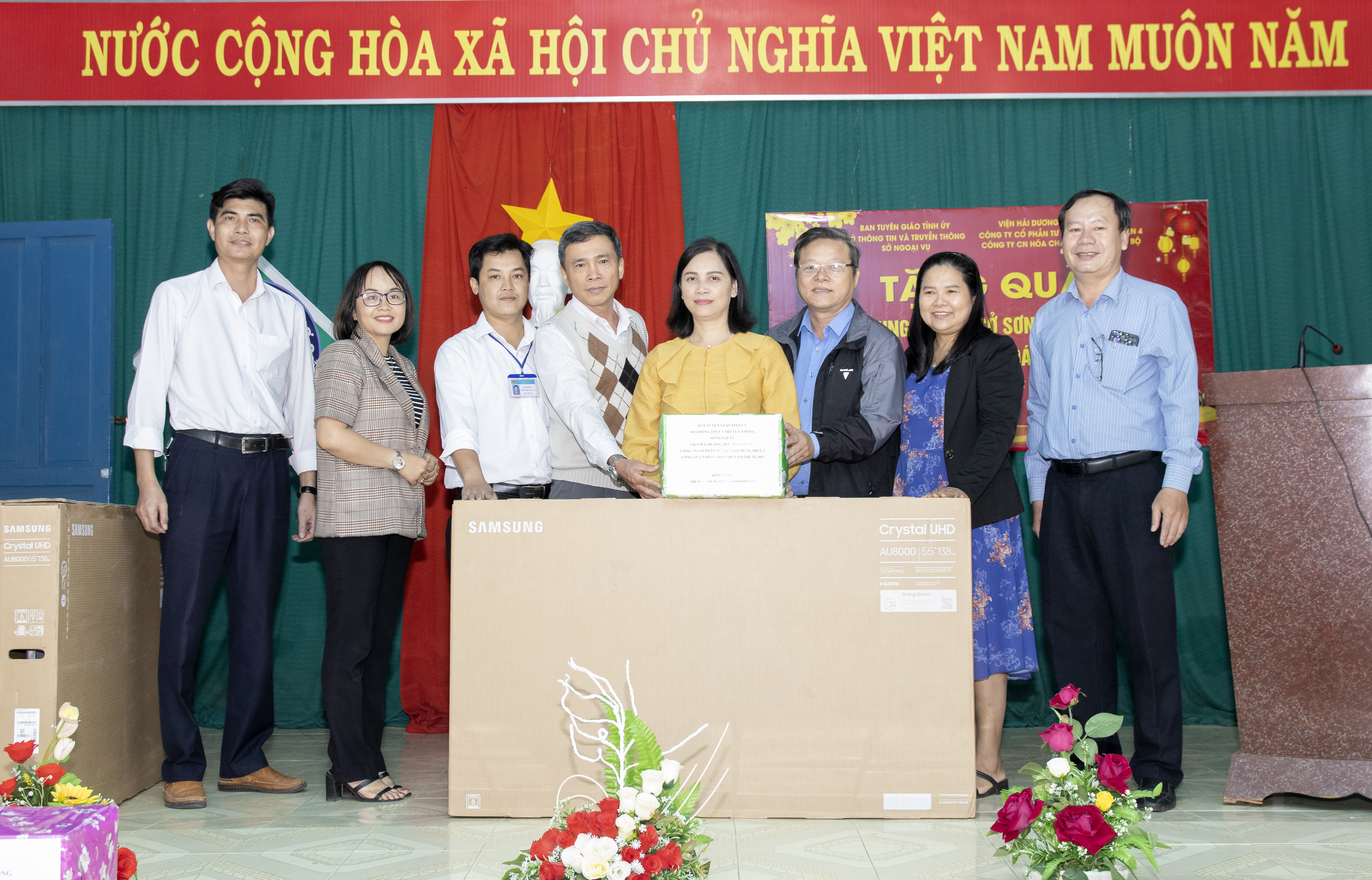 Tại các điểm thăm, các đơn vị đã trao tặng 04 ti vi màn hình phẳng (55 inch) và 300 quyển vở góp phần thiết thực cho công tác giảng dạy bằng giáo án điện tử theo chương trình đẩy mạnh ứng dụng công nghệ thông tin trong trường học, hỗ trợ các em học sinh trong học tập, góp phần nâng cao chất lượng dạy và học với tổng giá trị gần 63 triệu đồng.