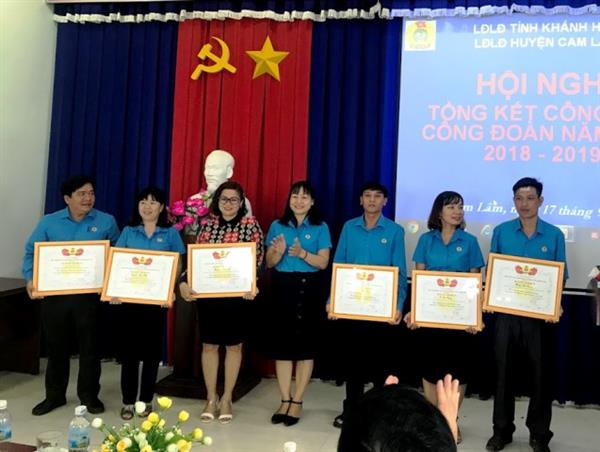 Nhằm đánh giá hoạt động công đoàn khối trường học năm học 2018 – 2019, sáng ngày 17/9/2019, LĐLĐ huyện tổ chức hội nghị tổng kết công tác công đoàn năm học 2018 – 2019. Tham dự hội nghị có đồng chí Nguyễn Thị Hằng – Phó chủ tịch LĐLĐ tỉnh Khánh Hòa cùng gần 110 đồng chí là cán bộ CĐCS đại diện cho 124 CĐCS trực thuộc.