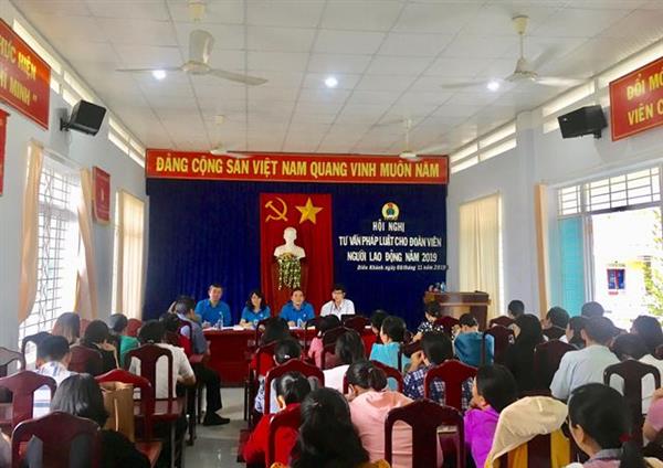 Ngày 8/11, Liên đoàn Lao động huyện Diên Khánh đã tổ chức hội nghị tuyên truyền và hỗ trợ tư vấn pháp luật lao động cho gần 100 đoàn viên công đoàn, đại diện cho hơn 3.000 đoàn viên từ 129 Công đoàn cơ sở trên địa bàn huyện Diên Khánh. Đoàn tư vấn gồm có: Ông Đào Quốc Trường – Thạc sĩ An toàn lao động – Phó chủ nhiệm Văn phòng Tư vấn pháp luật LĐLĐ tỉnh Khánh Hòa và các thành viên đại diện Tổ tư vấn Pháp luật LĐLĐ Diên Khánh.