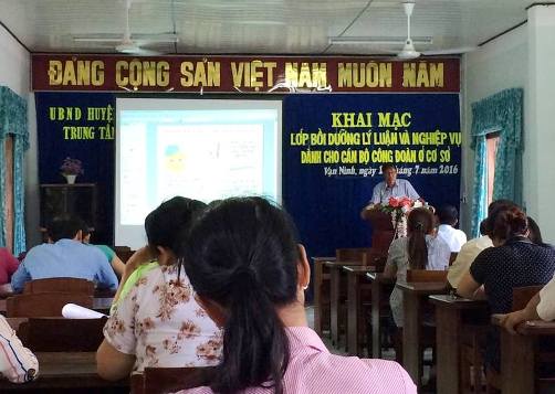 Sáng ngày 19 tháng 7 năm 2016, tại Hội trường Trung tâm bồi dưỡng chính trị huyện, Liên đoàn Lao động huyện Vạn Ninh phối hợp với Trung tâm bồi dưỡng chính trị huyện khai giảng lớp bồi dưỡng nghiệp vụ công đoàn cho 70 cán bộ các công đoàn cơ sở trực thuộc Liên đoàn Lao động huyện.