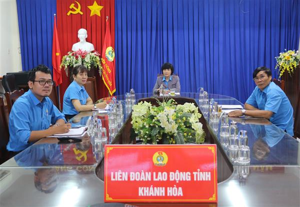 Đ/c Trần Thị Hương - Phó Chủ tịch LĐLĐ tỉnh chủ trì điểm cầu Khánh Hòa