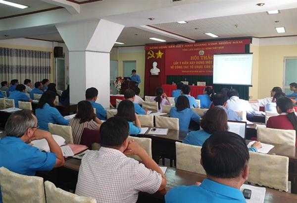 Trong 2 ngày 14-15/5/2019, tại TP. Hồ Chí Minh, Tổng Liên đoàn Lao động Việt Nam tổ chức Hội thảo lấy ý kiến một số văn bản về công tác tổ chức, cán bộ Công đoàn năm 2019. Tham dự Hội thảo có các đồng chí Chủ tịch, Trưởng Ban Tổ chức LĐLĐ các tỉnh duyên hải Nam Trung bộ; đ/c Trần Văn Thuật – Phó Chủ tịch Tổng LĐLĐ Việt Nam chủ trì Hội thảo.