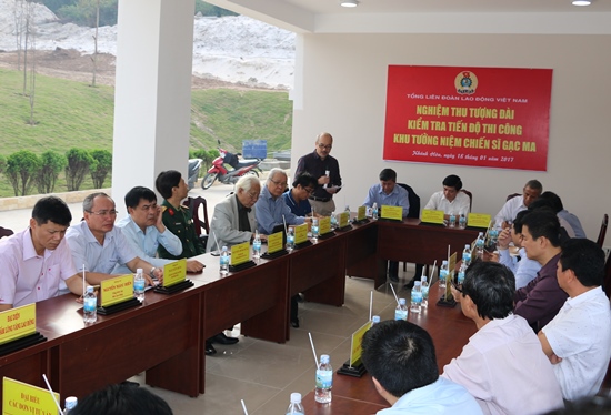 Sáng 18.1, Tổng LĐLĐ Việt Nam tổ chức nghiệm thu tượng đài và kiểm tra tiến độ thi công Khu tưởng niệm chiến sĩ Gạc Ma. Đồng chí Bùi Văn Cường, Ủy viên Trung ương Đảng, Chủ tịch Tổng LĐLĐ Việt Nam cùng các thành viên trong Đoàn Chủ tịch, Hội đồng nghệ thuật... đã đi thực tế công trình.
