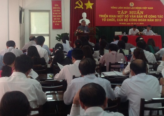 Sáng ngày 20/4, tại TP. Hồ Chí Minh, Tổng Liên đoàn Lao động Việt Nam (TLĐLĐ) mở lớp tập huấn triển khai một số văn bản mới về công tác tổ chức, cán bộ công đoàn năm 2015. Tham dự và chỉ đạo hội nghị có các đồng chí Trần Thanh Hải - Phó Chủ tịch Thường trực; Trần Văn Lý - Phó Chủ tịch Tổng LĐLĐ Việt Nam.