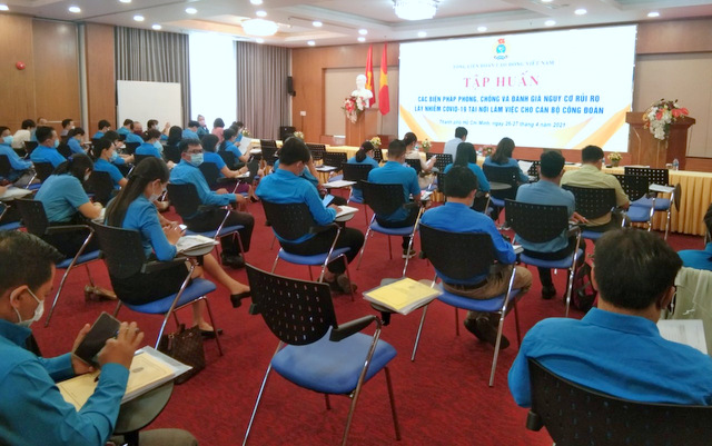 Ngày 25,26/4/2021, tại Thành phố Hồ Chí Minh, Tổng LĐLĐ việt Nam tổ chức tập huấn các biện pháp phòng, chống và đánh giá nguy cơ rủi ro lây nhiễm Covid-19 tại nơi làm việc cho 80 cán bộ Công đoàn của 34 LĐLĐ các tỉnh Nam Trung bộ, đại diện Công đoàn các Khu Công nghiệp, Khu Kinh tế, Khu Chế xuất.