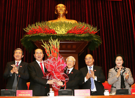 Các đại biểu Hội nghị lần thứ nhất BCH Trung ương Đảng khóa XII chúc mừng