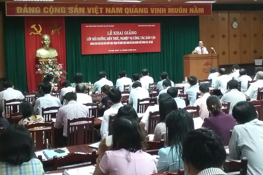 Thực hiện Kế hoạch số 180-KH/BTCTW, ngày 30/12/2015 của Ban Tổ chức Trung ương về đào tạo, bồi dưỡng cán bộ năm 2016, sáng ngày 12/9, tại Học viện Chính trị quốc gia Hồ Chí Minh, đã tổ chức Lễ khai giảng Lớp bồi dưỡng kiến thức, nghiệp vụ công tác Dân vận năm 2016.