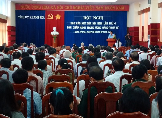 Chiều 18-10, đồng chí Lê Thanh Quang - Ủy viên Trung ương Đảng, Bí thư Tỉnh ủy báo cáo kết quả Hội nghị lần thứ 4 Ban Chấp hành Trung ương Đảng (khóa XII) diễn ra tại Hà Nội từ ngày 9 đến 14-10 cho cán bộ chủ chốt của tỉnh và các đồng chí nguyên Ủy viên Ban Thường vụ Tỉnh ủy các thời kỳ.