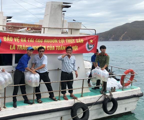 Tại đây, Chi đoàn cơ quan LĐLĐ tỉnh đã tham gia cùng thả 1,1 triệu tôm giống, cá giống và sinh vật biển các loại với tổng trị giá gần 150 triệu đồng, từ nguồn kinh phí xã hội hoá do các tổ chức, cá nhân hoạt động trong lĩnh vực thuỷ sản đóng góp.