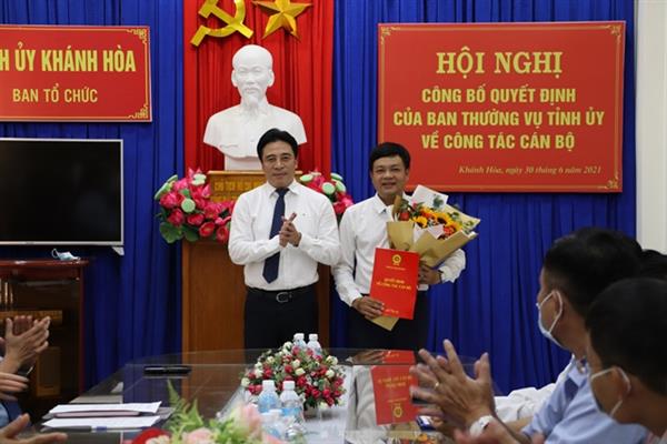 Chiều nay (30/6), Ban tổ chức Tỉnh ủy Khánh Hòa tổ chức hội nghị công bố quyết định của Ban thường vụ Tỉnh ủy về công tác cán bộ. Đồng chí Nguyễn Khắc Toàn, Phó Bí thư Thường trực Tỉnh ủy, Chủ tịch HĐND tỉnh dự và trao quyết định bổ nhiệm.