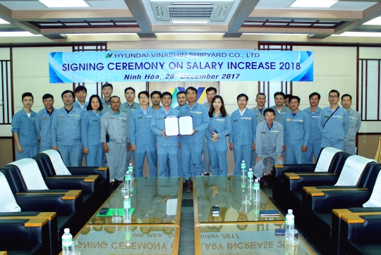Theo lãnh đạo Công ty TNHH Nhà máy tàu biển Hyundai Vinashin (HVS), sau 5 phiên đàm phán, lãnh đạo HVS và công đoàn công ty đã thống nhất 7 nội dung liên quan đến người lao động trong năm 2018.