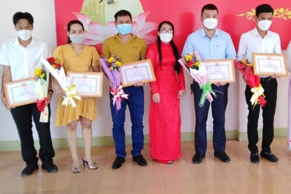 Đại diện lãnh đạo Đảng ủy Cụm CN khen thưởng đảng viên hoàn thành xuất sắc nhiệm vụ năm 2021