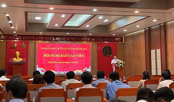 Chiều ngày 8/4/2021, Đảng uỷ khối các cơ quan tỉnh Khánh Hoà tổ chức Hội nghị Báo cáo viên Quý II năm 2021. Đồng chí Hồ Xuân Đức, Phó Trưởng ban phụ trách Ban Tuyên giáo Đảng uỷ Khối chủ trì hội nghị. Dự hội nghị có các đồng chí ủy viên Ban Thường vụ, Uỷ viên Ban Chấp hành Đảng bộ Khối; báo cáo viên Đảng uỷ khối và báo cáo viên cơ sở.