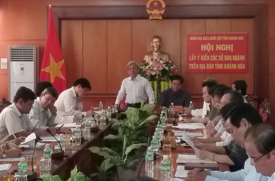 Chiều ngày 11/10/2017, tại phòng họp thuộc Văn phòng Hội đồng nhân dân tỉnh Khánh Hòa, Đoàn đại biểu Quốc hội tỉnh Khánh Hòa do đồng chí Lê Xuân Thân - Ủy viên Ban Thường vụ Tỉnh ủy - Trưởng Đoàn đại biểu Quốc hội tỉnh Khánh Hòa cùng đồng chí Lữ Thanh Hải - Tỉnh ủy viên - đại biểu Quốc hội chuyên trách tỉnh Khánh Hòa, chủ trì Hội nghị lấy ý kiến các sở, ban, ngành trên địa bàn tỉnh Khánh Hòa, chuẩn bị nội dung ý kiến, kiến nghị của tỉnh đối với Quốc hội, Chính phủ, các bộ, ngành Trung ương tại kỳ họp thứ 4, Quốc hội khóa XIV. Tham dự có đồng chí Trần Sơn Hải- Ủy viên Ban Thường vụ Tỉnh ủy, Phó Chủ tịch Thường trực UBND tỉnh Khánh Hòa, lãnh đạo các sở, ban, ngành trên địa bàn tỉnh.