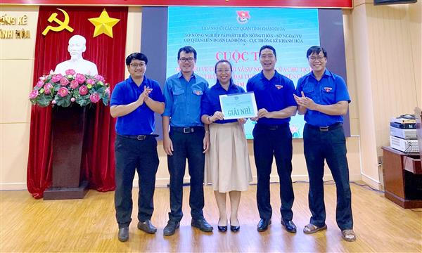 Đ/c Ngô Duy Khiêm, UV BTV Đoàn Khối CCQ tỉnh, Bí thư Đoàn cơ sở Sở NNPTNT tỉnh trao Giải nhì cho Chi đoàn CQ LĐLĐ tỉnh