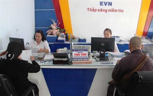 Chị Nguyễn Thị Mỹ Linh (ngoài cùng bên trái) – tại quầy giao dịch Điện lực Vạn Ninh