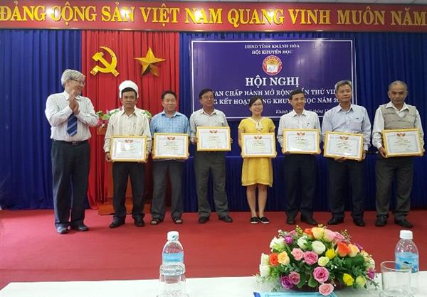 Đ/c Nguyễn Việt Dân - Chủ tịch Hội Khuyến học tỉnh Khánh Hòa tặng giấy khen cho các tập thể xuất sắc năm 2018
