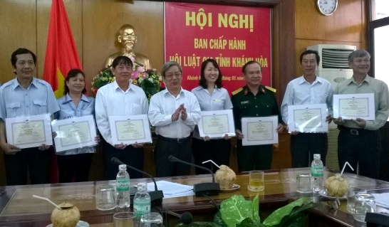 Tại Hội nghị, Ban Chấp hành Hội Luật gia tỉnh Khánh Hòa đã đánh giá cao kết quả nỗ lực hoạt động của Hội Luật gia tỉnh Khánh Hòa và các hội, chi hội trực thuộc, đạt nhiều thành tích xuất sắc, góp phần quan trọng trong công tác tham gia góp ý dự thảo các văn bản pháp luật, công tác tuyên truyền, giáo dục và tư vấn pháp luật đến nhân dân, đặc biệt Chi hội Luật gia Công đoàn Khánh Hòa đã tuyên truyền nhiều nội dung văn bản pháp luật đến đông đảo công nhân lao động trong các doanh nghiệp, trong năm Tỉnh hội đã phát triển 1 chi hội và 27 hội viên mới…, với thành tích xuất sắc, năm 2015, Hội Luật gia Việt Nam đã tặng Cờ xuất sắc cho Hội Luật gia tỉnh Khánh Hòa và 4 Bằng khen cho tập thể, cá nhân của Tỉnh hội.