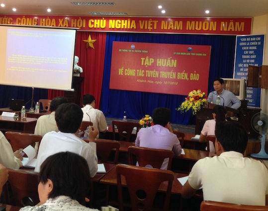 Thực hiện Nghị quyết số 09-NQ/TW lần thứ 4 (khoá X) của Ban Chấp hành Trung ương Đảng về "Chiến lược Biển Việt Nam đến năm 2020", sáng 10/7 tại Hội trường Sở Thông tin và Truyền thông tỉnh, Bộ Thông tin và Truyền thông phối hợp với Uỷ ban nhân dân tỉnh Khánh Hoà tổ chức tập huấn về công tác tuyên truyền biển đảo năm 2015.