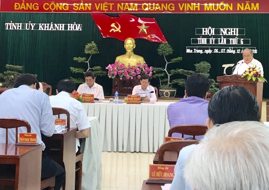 Trong hai ngày (6-7/12), Tỉnh uỷ Khánh Hoà đã tổ chức hội nghị lần thứ 6, nhiệm kỳ 2015 - 2020. Các đồng chí Lê Thanh Quang - Uỷ viên Trung ương Đảng, Bí thư Tỉnh uỷ; Nguyễn Tấn Tuân - Phó Bí thư Thường trực Tỉnh uỷ, Chủ tịch HĐND tỉnh; Lê Đức Vinh - Phó Bí thư Tỉnh uỷ, Chủ tich UBND tỉnh chủ trì hội nghị.
