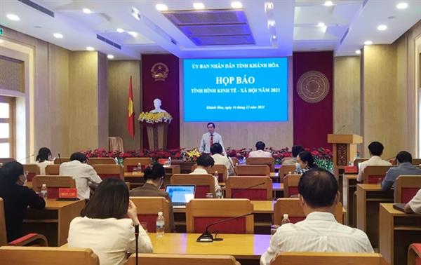 Đại diện UBND tỉnh đã cung cấp một số thông tin chính về tình hình kinh tế - xã hội của tỉnh năm 2021 và công tác phòng, chống dịch Covid-19 trên địa bàn tỉnh, tính đến 17h00 ngày 8/12/2021, toàn tỉnh Khánh Hòa ghi nhận 8.292 trường hợp dương tính với SARS-CoV-2, số ca ra viện là 14.069 chiếm tỷ lệ 76,91%, tỷ lệ người dân từ 18 tuổi trở lên được tiêm đủ 2 mũi vaccine ngừa Covid-19 đạt trên 94,60%; 93,34% trẻ em từ 12-17 tuổi đã tiêm vaccine mũi 1. Năm 2021 do ảnh hưởng tình hình dịch bệnh Covid - 19, tổng sản lượng trên địa bàn tỉnh (GRDP) ước giảm 5,58% so với cùng kỳ năm trước, trong đó GRDP theo ngành kinh tế giảm 6,05% so với cùng kỳ năm trước.