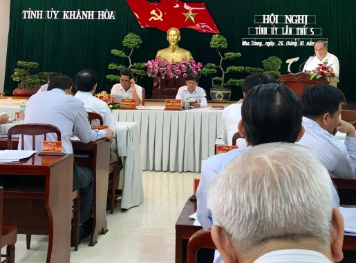 Ngày 26/10, Tỉnh uỷ Khánh Hoà khai mạc kỳ họp thứ 5, khoá XVII nhiệm kỳ 2015 - 2020; các đồng chí Lê Thanh Quang- Uỷ viên TW Đảng, Bí thư Tỉnh uỷ; Nguyễn Tấn Tuân - Phó Bí thư Thường trực Tỉnh uỷ, Chủ tịch HĐND tỉnh; Lê Đức Vinh - Phó Bí thư Tỉnh uỷ, Chủ tịch UBND tỉnh chủ trì hội nghị.