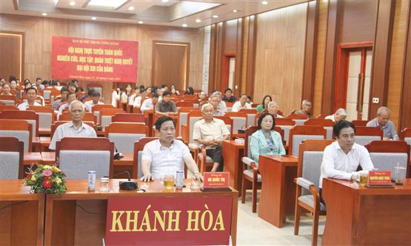 Tỉnh Khánh Hòa có 19 điểm cầu với 3.580 cán bộ, đảng viên dự; Tại điểm cầu Tỉnh ủy, đồng chí Nguyễn Khắc Toàn - Phó Bí thư Thường trực Tỉnh ủy và đồng chí Hà Quốc Trị - Phó Bí thư Tỉnh ủy chủ trì, cùng tham dự có các đồng chí Thường trực Tỉnh ủy, các đồng chí nguyên Ủy viên Ban Thường vụ Tỉnh ủy, trưởng phó các cơ quan tham mưu, giúp việc của Tỉnh ủy, UBMTTQ Việt Nam và các tổ chức chính trị xã hội tỉnh, Ủy viên Ủy ban Kiểm tra Tỉnh ủy, trưởng phó các phòng thuộc các cơ quant ham mưu giúp việc của Tỉnh ủy, Ban Tuyên giáo UBMTTQ Việt Nam và các tổ chức chính trị-xã hội tỉnh.