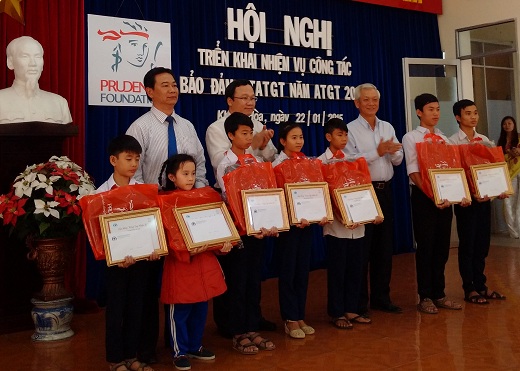 Dịp này, Ủy ban ATGT Quốc gia, Quỹ Prudence (Công ty TNHH Bảo hiểm nhân thọ Prudential) phối hợp trao 11 suất học bổng “Vòng tay nhân ái” cho con của các nạn nhân tử vong do TNGT thuộc diện hộ nghèo, cận nghèo. Mỗi suất trị giá 3 hoặc 5 triệu đồng.