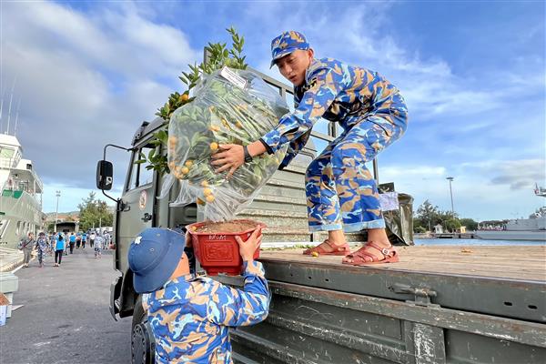 Cứ mỗi dịp Tết đến Xuân về, Bộ Tư lệnh Vùng 4 Hải quân lại chở hàng trăm tấn hàng hóa, nhu yếu phẩm từ mọi miền của Tổ quốc ra các đảo trên Quần đảo Trường Sa. Dưới đây là một số hình ảnh không khí rộn ràng chuẩn bị các sản vật để gửi theo tàu mang ra đảo do phóng viên Khánh Hòa online ghi lại.
