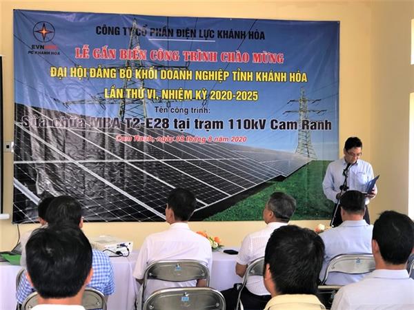 Chào mừng Đại hội đại biểu Đảng bộ Khối Doanh nghiệp tỉnh Khánh Hòa lần thứ VI, nhiệm kỳ 2020 -2025, PC Khánh Hòa đã tổ chức gắn biển Công trình “Sửa chữa MBA T2-E28 tại trạm biến áp 110kV Cam Ranh”.