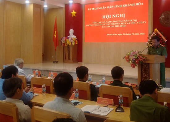 Ngày 23-12, UBND tỉnh Khánh Hòa tổ chức hội nghị tổng kết 15 năm công tác xây dựng phong trào Toàn dân phòng cháy và chữa cháy (PCCC), giai đoạn 2001 - 2016. Đồng chí Đào Công Thiên - Phó Chủ tịch UBND tỉnh đến dự.