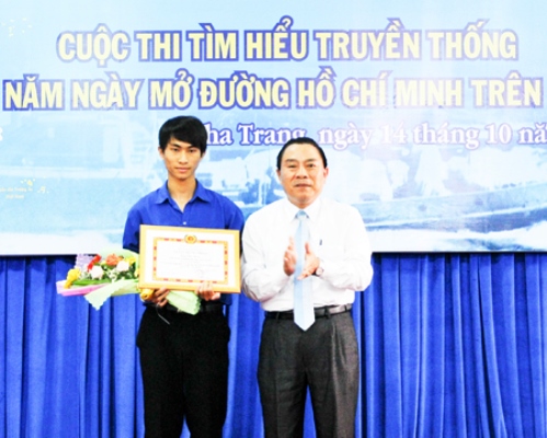 Ngày 14-10, Ban Tuyên giáo Tỉnh ủy Khánh Hòa đã tổng kết Cuộc thi tìm hiểu truyền thống 55 năm ngày mở đường Hồ Chí Minh trên biển. Ban tổ chức đã trao 1 giải tập thể, 16 giải cá nhân; trong đó, 1 giải nhất, 2 giải nhì, 3 giải ba và 10 giải khuyến khích. Giải tập thể thuộc về thị xã Ninh Hòa với số lượng người tham gia nhiều nhất, nhiều bài thi chất lượng nhất; giải nhất cá nhân thuộc về thí sinh Lưu Tài Nam - sinh viên Trường Đại học Nha Trang.