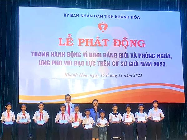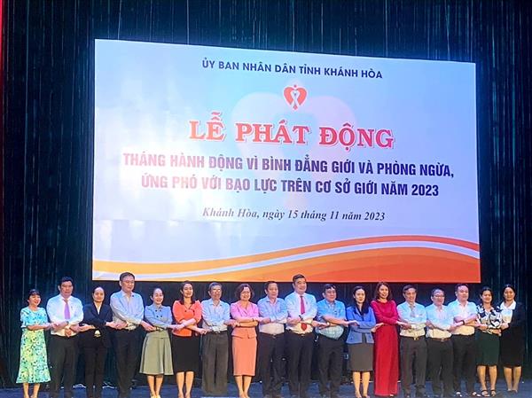 Tại Lễ phát động, các đại biểu được Sở Lao động – Thương binh và Xã hội tỉnh Khánh Hòa tuyên truyền thông điệp của Tháng hành động vì bình đẳng giới và phòng ngừa, ứng phó với bạo lực trên cơ sở giới năm 2023 (từ ngày 15/11/2023 đến ngày 15/12/2023) với chủ đề,: “Đảm bảo an sinh xã hội, tăng cường quyền năng cho phụ nữ và trẻ em gái nhằm thực hiện bình đẳng giới và xóa bỏ bạo lực trên cơ sở giới”. “Đầu tư cho bình đẳng giới là đầu tư cho tương lai”, “Bình đẳng giới là thước đo của sự văn minh, tiến bộ và công bằng xã hội”, “Nam, nữ bình đẳng, xã hội văn minh, gia đình hạnh phúc”..