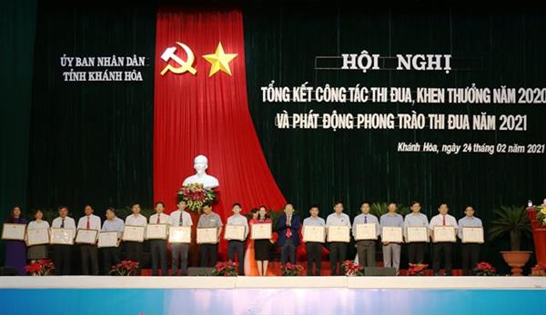 Sáng 24/02, UBND tỉnh Khánh Hòa tổ chức Hội nghị Tổng kết công tác thi đua, khen thưởng năm 2020 và phát động phong trào thi đua năm 2021. Tham dự có các đồng chí: Nguyễn Khắc Định - Ủy viên Trung ương Đảng, Bí thư Tỉnh ủy; Nguyễn Tấn Tuân - Phó Bí thư Tỉnh ủy, Chủ tịch UBND tỉnh.