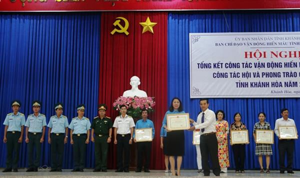 Nhân dịp này, Trung ương Hội Chữ thập đỏ Việt Nam tặng kỷ niệm chương “Vì sự nghiệp nhân đạo” cho 1 cá nhân; tặng bằng khen cho 3 gia đình, 4 cá nhân có thành tích xuất sắc trong công tác tuyên truyền và trực tiếp hiến máu nhiều lần năm 2019. UBND tỉnh tặng bằng khen cho 34 tập thể, 32 cá nhân. Ban Chỉ đạo Vận động hiến máu tình nguyện tỉnh tặng giấy khen cho 54 tập thể, 40 cá nhân. Hội Chữ thập đỏ tỉnh tặng giấy khen cho 3 tập thể. đặc biệt Công đoàn Khánh Hòa được khen thưởng 2 tập thể và 3 cá nhân có nhiều đóng góp trong công tác vận động hiến máu tình nguyện 2019.