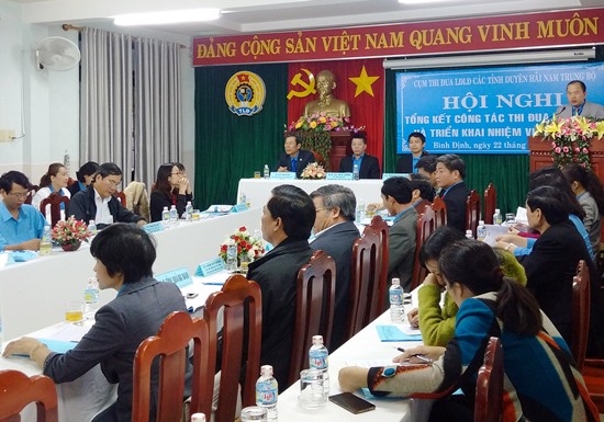 Ngày 22-12, tại LĐLĐ tỉnh Bình Định, Cụm thi đua LĐLĐ 6 tỉnh Duyên hải Nam Trung bộ (Quảng Nam, Quảng Ngãi, Bình Định, Phú Yên, Khánh Hòa, Ninh Thuận) đã tổ chức Hội nghị tổng kết công tác thi đua năm 2017; triển khai phương hướng, nhiệm vụ trọng tâm năm 2018. Đồng chí Tạ Văn Đồng - Ủy viên Đoàn Chủ tịch, Chủ nhiệm UBKT Tổng LĐLĐ Việt Nam dự và chỉ đạo hội nghị.