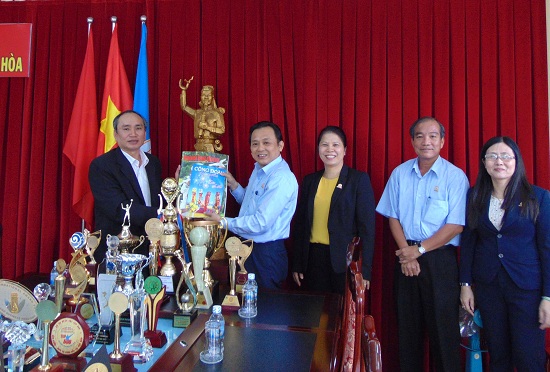 Sáng nay 10.2, Chủ tịch LĐLĐ tỉnh Nguyễn Hòa đã đến thăm, chúc Tết CB,CNV,NLĐ Công ty Yến Sào Khánh Hòa nhân dịp Xuân Ất Mùi 2015. Đồng thời thăm, tặng quà CNLĐ Xí nghiệp Thiết kế - Xây dựng Nhà yến và Trung tâm Dịch vụ Khách hàng là hai đơn vị trực thuộc Công ty.