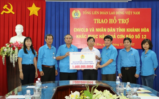 Với tinh thần “Ở đâu khó, có Công đoàn”, các cấp Công đoàn luôn kịp thời trực tiếp thăm hỏi, hỗ trợ người dân và NLĐ bị thiệt hại trong các đợt thiên tai, cơn bão số 12 (Damrey), đặc biệt hỗ trợ ngư dân bị chìm tàu, bị tai nạn tiếp tục vươn khơi bám biển với tổng kinh phí trên 6 tỷ đồng.