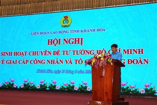 Sáng 14-6, tại Hội trường Trường sĩ quan Thông tin (Tp Nha Trang), Liên đoàn Lao động tỉnh Khánh Hoà tổ chức Hội nghị sinh hoạt chuyên đề tư tưởng Hồ Chí Minh về giai cấp công nhân và tổ chức Công đoàn.