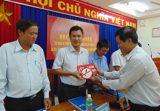trao biến báo cấm hút thuốc cho các CĐCS triển khai PCTHTL tại nơi làm việc.