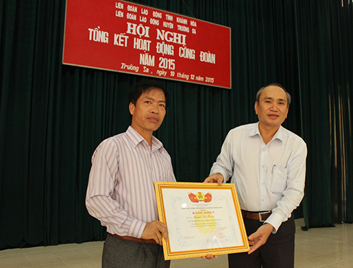 Công đoàn Trường Sa hiện có 4 công đoàn cơ sở tại các đảo Sinh Tồn, Song Tử Tây, Trường Sa Lớn và Văn phòng HĐND, UBND huyện Trường Sa. Trao bằng khen ghi nhận những thành tích xuất sắc trong năm 2015 tại buổi lễ tổng kết hoạt động Công đoàn Trường Sa vào ngày 10-11 vừa qua, ông Nguyễn Hòa, Chủ tịch LĐLĐ tỉnh Khánh Hòa đã không dấu niềm tự hào khi nói rằng: “Công đoàn Trường Sa đã thực sự là cầu nối vững chắc gắn kết đoàn viên của cả nước, cũng như của Khánh Hòa, giữa đất liền và đảo xa, đã chăm lo tốt đời sống của đoàn viên công tác nơi đảo xa”.