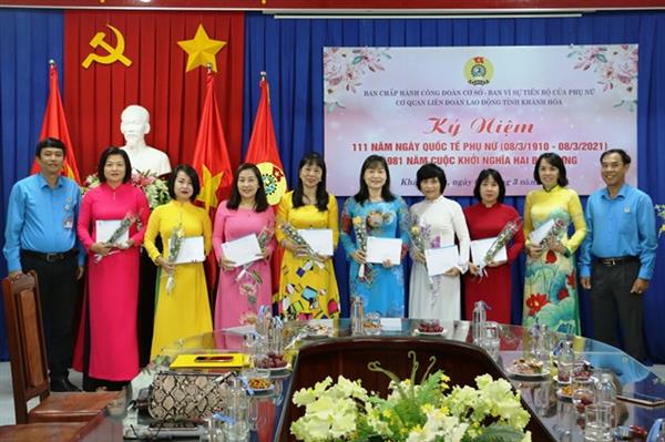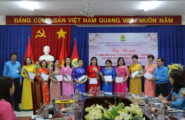 Dịp này, Lãnh đạo cơ quan LĐLĐ tỉnh đã trao những bông hoa tươi thắm gửi đến các chị em nữ cán bộ, công chức cơ quan.