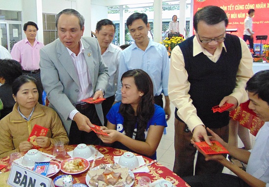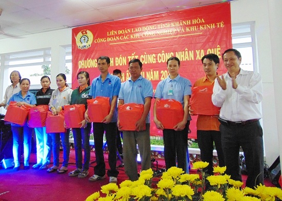 Nằm trong chuỗi hoạt động chăm lo cho CN khó khăn trong dịp Tết Ất Mùi năm 2015, chiều tối 10-2, LĐLĐ tỉnh cùng với CĐ các Khu CN và KKT tỉnh đã tổ chức tiệc tất niên và tặng quà cho 40 công nhân đang làm việc tại Khu công nghiệp Suối Dầu huyện Cam Lâm không có điều kiện về quê đón Tết, chủ yếu là CN ở các tỉnh phía Bắc.