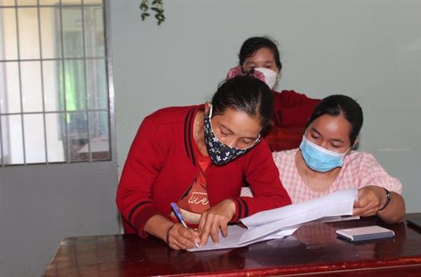 Đại diện Liên đoàn Lao động huyện Cam Lâm chi hỗ trợ cho NLĐ là F1, F2