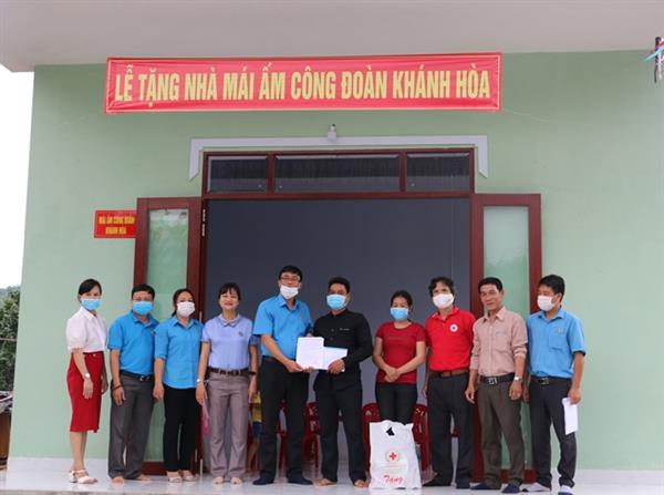 Cùng với việc hỗ trợ đoàn viên, NLĐ, Công đoàn tỉnh còn trích hơn 1 tỷ đồng hỗ trợ xây mới và sửa chữa 26 căn nhà mái ấm công đoàn cho NLĐ khó khăn. Hôm chúng tôi đến nghiệm thu, bàn giao căn nhà cấp 4 khang trang rộng hơn 50m2 cho gia đình anh Cao Vinh, bảo vệ Trường Tiểu học xã Khánh Phú (huyện Khánh Vĩnh), anh mừng đến rưng rưng nước mắt. Bởi căn nhà là niềm mong ước nhiều năm qua của cả gia đình với 6 nhân khẩu. Thu nhập hàng tháng chưa đến 3 triệu đồng của anh chỉ đủ lo cho cuộc sống hàng ngày và nuôi 4 con ăn học. Được bố mẹ cho mảnh đất nhưng do hoàn cảnh khó khăn nên gia đình chỉ dựng căn nhà tranh để ở gần 20 năm qua. Thấy hoàn cảnh của anh, Công đoàn tỉnh đã hỗ trợ gia đình anh 50 triệu đồng để xây căn nhà mới. Anh Vinh rất biết ơn Công đoàn tỉnh đã hỗ trợ kinh phí xây nhà cho gia đình.