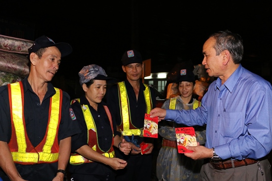 Trong không khí mừng Xuân mới, đồng chí Nguyễn Hòa đã ân cần thăm hỏi công tác chuẩn bị đón Tết, sẻ chia tình cảm và đánh giá cao tinh thần trách nhiệm của cán bộ, công nhân lao động Công ty CP Môi trường Đô thị Nha Trang– những người phải thường xuyên làm việc trong ngày Tết vì môi trường sạch đẹp của thành phố.